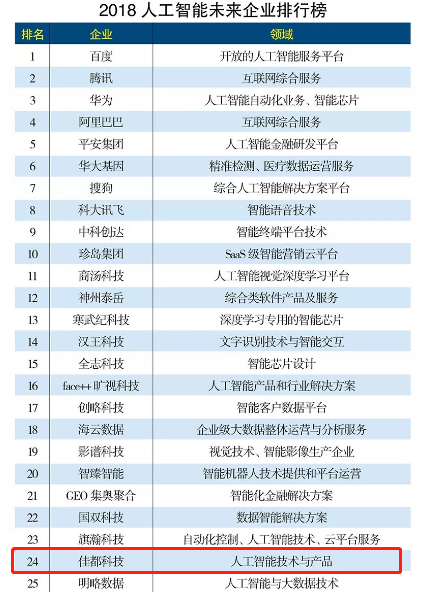 再传佳音丨z6.com科技登2018人工智能未来企业排行榜